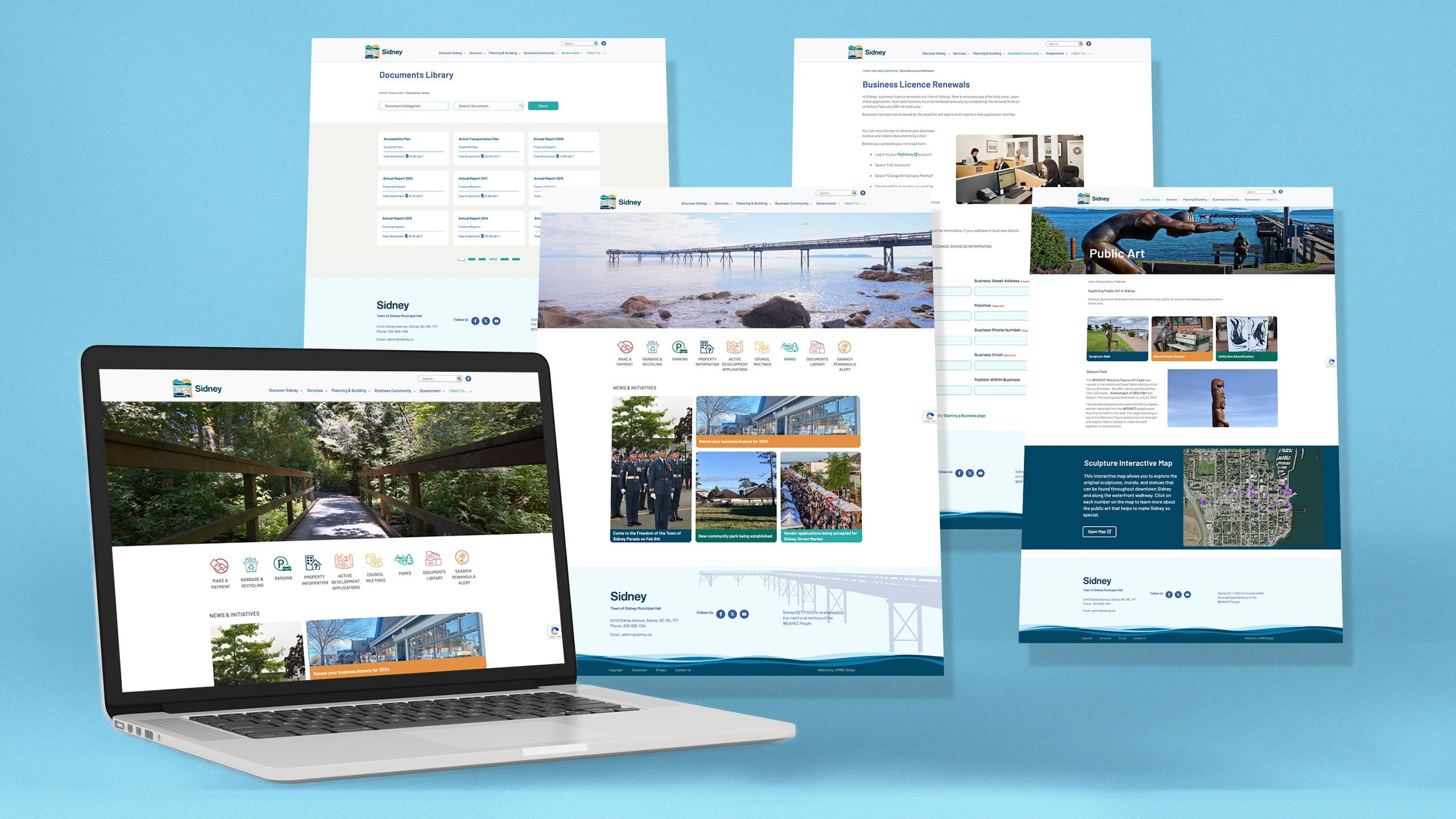 KIMBO Design partnered with the Town of Sidney to redesign and develop a highly functional and visually cohesive website that would serve as the primary communication hub for Sidney’s residents. The project began with a comprehensive website audit, where KIMBO provided a detailed report with recommendations for improved functionality, intuitive design, and enhanced navigation.